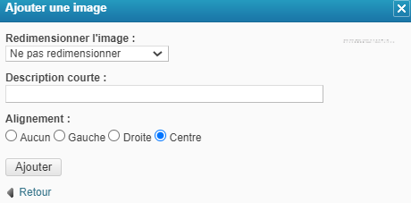 c) une fenêtre s’ouvre lorsque l'image est prête à être insérer dans votre article :