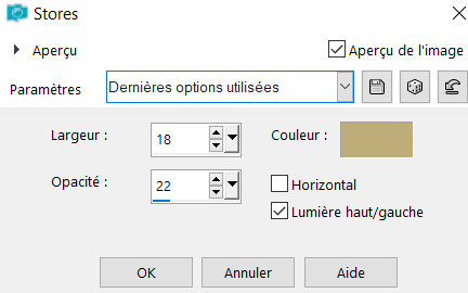 3° Effet de texture store avec les paramètres suivants :