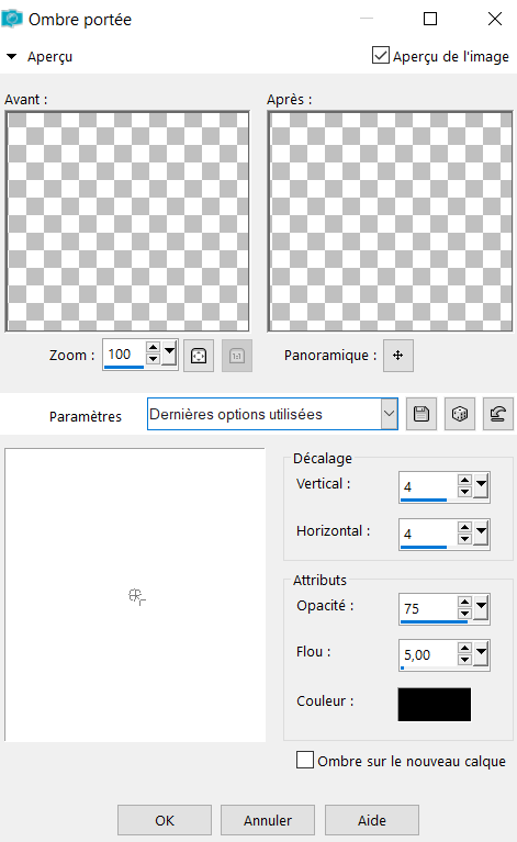 17° Effet 3D - Ombre portée avec les paramètres suivants :