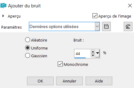 19° Réglage - Ajouter du bruit avec les paramètres suivants :