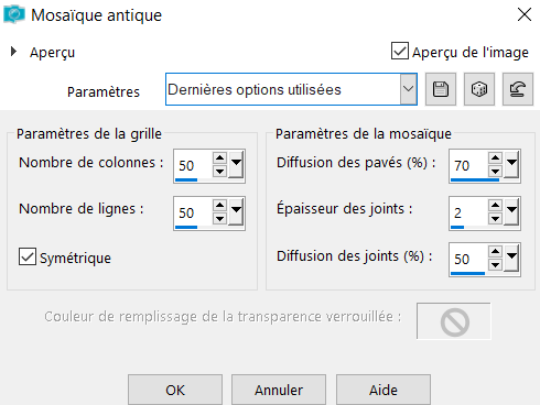 7° Effets - Effets de texture mosaïque avec les paramètres suivants :