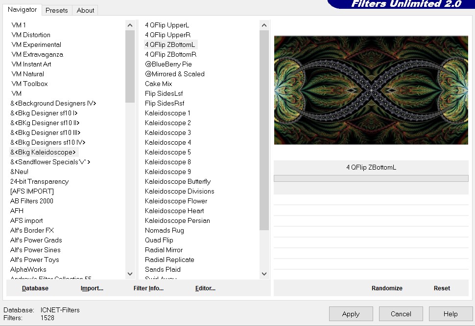 Filtre Unlimited 2.0 - Bkg Kaleidoscope - 4 QFlip ZbottomL par défaut